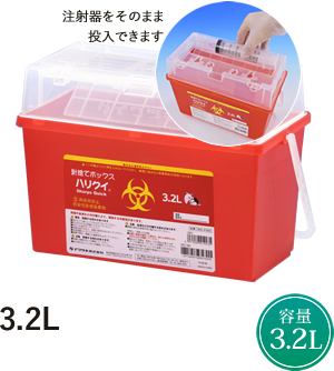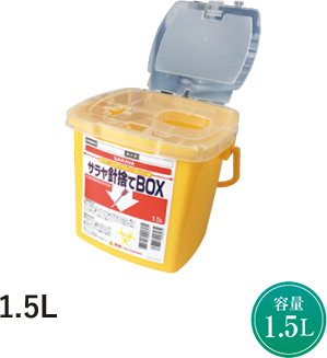 注射針をメインに、小型のものを廃棄処分するのに適した容器です。必要な容量に応じたサイズをご用意しております。内蓋を使ってシリンジと針を分別できるので、安全かつ衛生的な処理が可能です。
